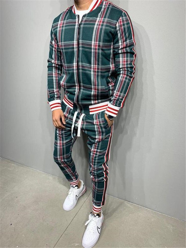 New Men Set Tracksuit Men Sportsuits Gentlemen Set Zipper jacket suit Long Sleeve stripe Coat+Pants Gyms Casual Sportswear Suit