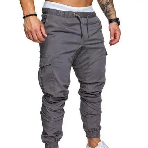Men safari cargo pants Joggers Sweatpants Casual Male Sportswear Solid Multi-pocket Cargo Trousers Hip Hop Harem Pants Slim Fit: Casual Thin Breathable Tie Drawstring Long Pants Men Casual Solid Color Pockets Waist Drawstring Ankle Tied Skinny Cargo Pants