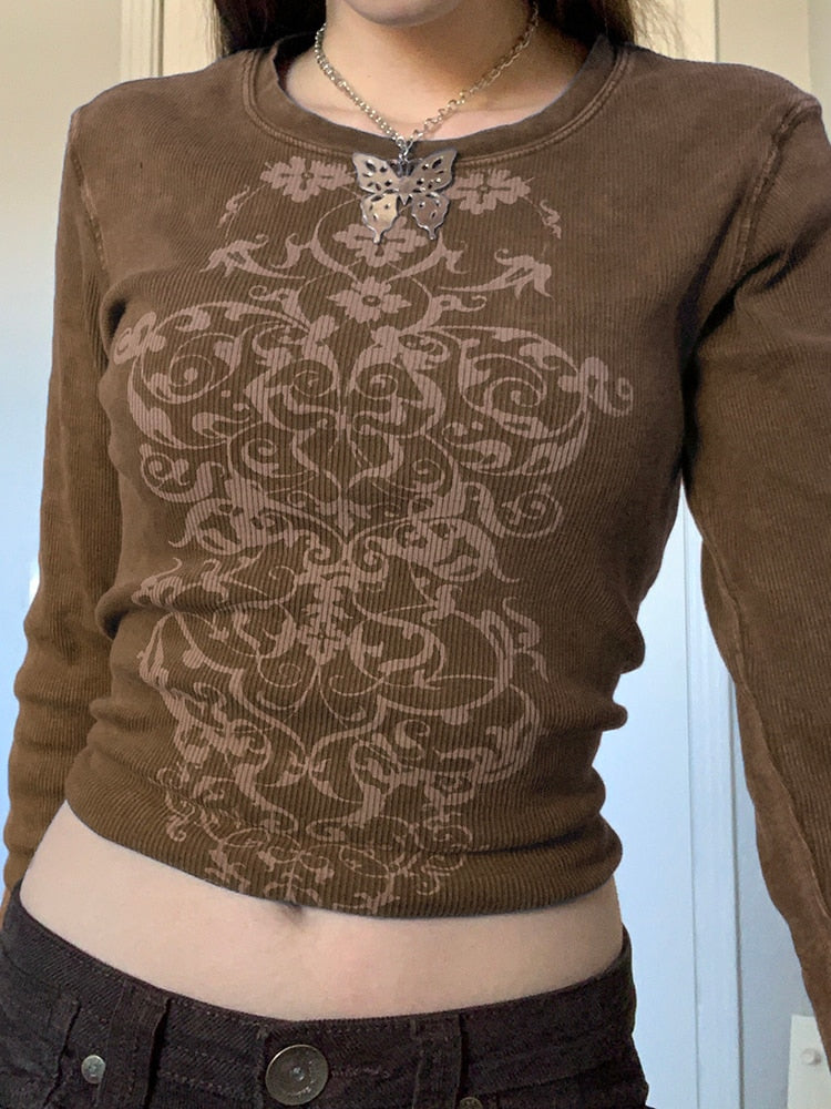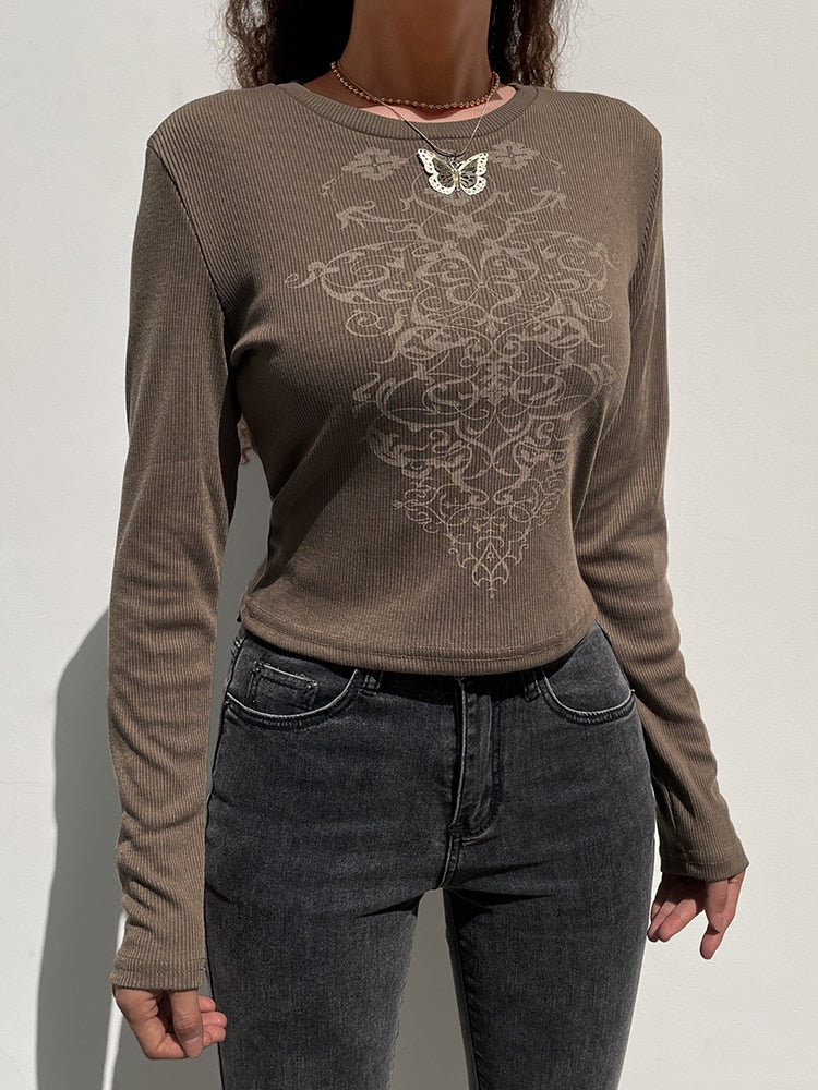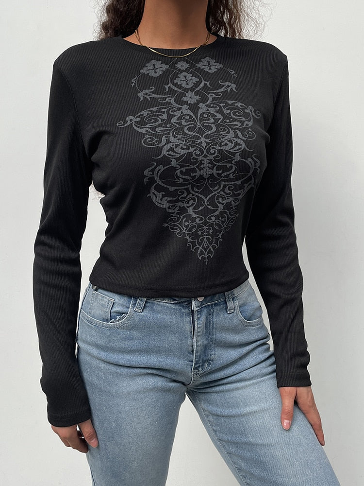 HEYounGIRL Print Casual Harajuku Graphic T Shirts Women Autumn Long Sleeve Basic Crop Top Tshirt Ladies Fashion Streetwear