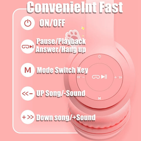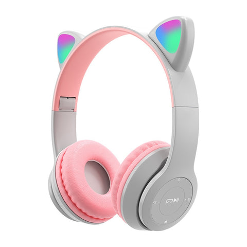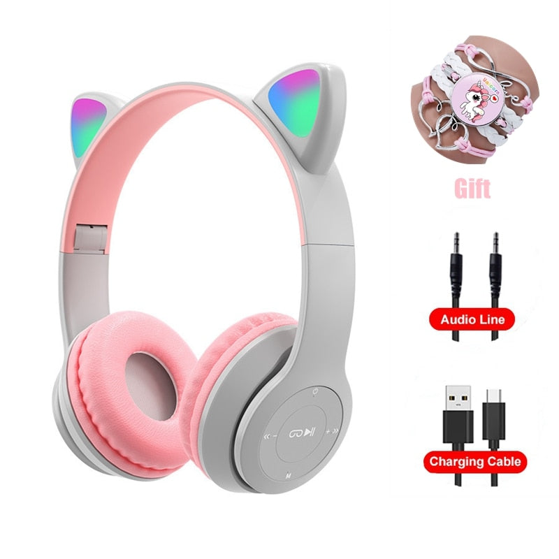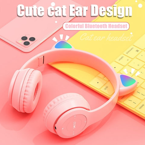 Pink Girl Wireless Headphones RGB Cute Cat Ears Headset With Microphone Noise Cancelling Kid Stereo Music casco Children's Gifts