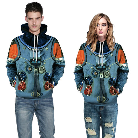 QNPQYX Women Man Winter Streetwear Hoodies Tops 3D Astronaut Space Suit Pullover Sweatshirt Terror Pocket Outwear Warm Hoodies