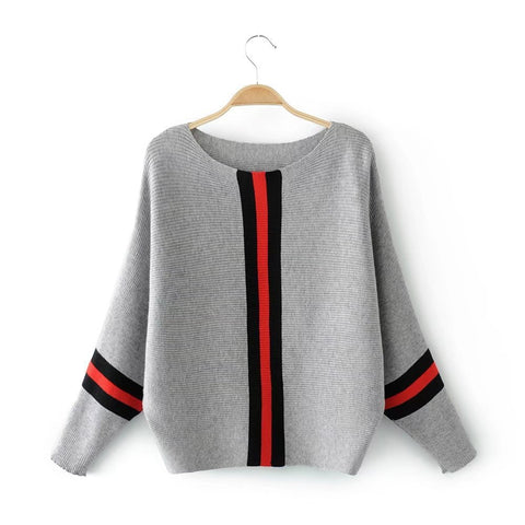 Striped Stitching Batwing Sleeve Knitted Sweater